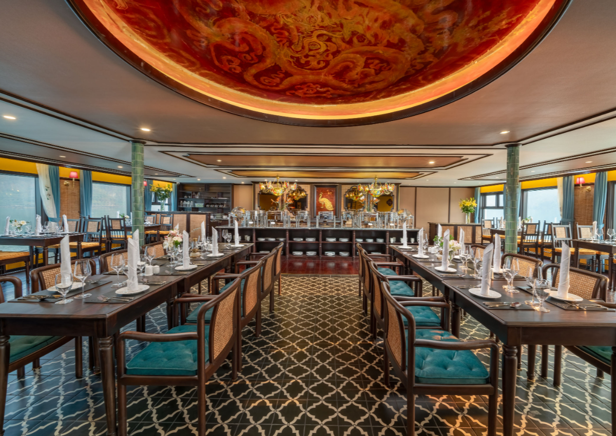 享用豪華晚餐,品嚐由才華橫溢的廚師團隊精心製作的精緻菜肴,並在船上的溫馨高雅空間中用餐。 |